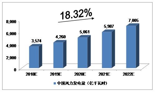 图表 中投顾问对2018-2022年中国风力发电量预测