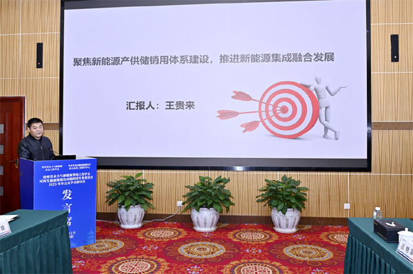 在交流报告会上,七位与会专家先后作了题为《贵州山区现代水网建设规划》《贵阳市水网建设研究》《新能源生产管理模式分享》《“水利+抽蓄”盘活存量资产的理论框架与工程实践》《面向电缆成本最优的光伏逆变器定位算法研究及工程实践》《柔性支架抗风性能及其工程应用研究》《水风光储多源协同互补技术研究》学术报告。